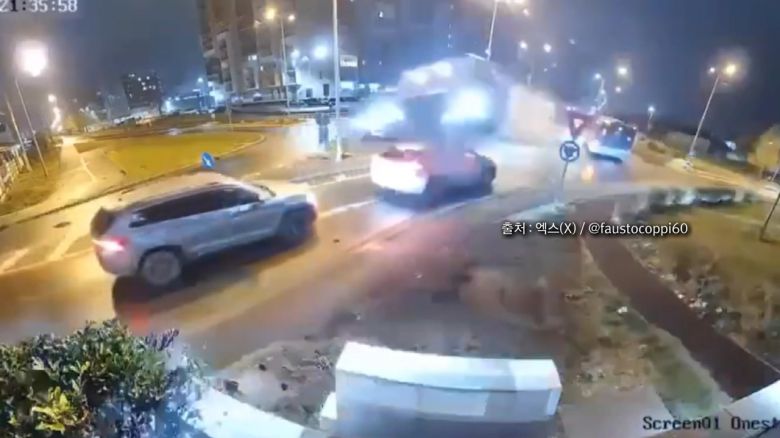 그런데 갑자기 멀리서 빛이 번쩍 나더니 차량 한 대가 그대로 튀어 오릅니다.