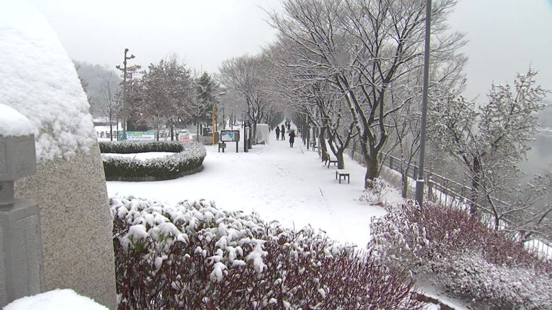 네, 밤사이 홍천 서석면에는 9.2cm, 화천 광덕산에 8cm 등 강원 산간을 중심으로 3∼9cm 안팎의 눈이 쌓였습니다.