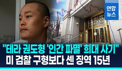 (서울=연합뉴스) 스테이블코인 '테라USD' 사기 사태를 일으킨 권도형(34) 테라폼랩스 설립자가 미국 법원에서 징역 15년형을 선고받았습니다.