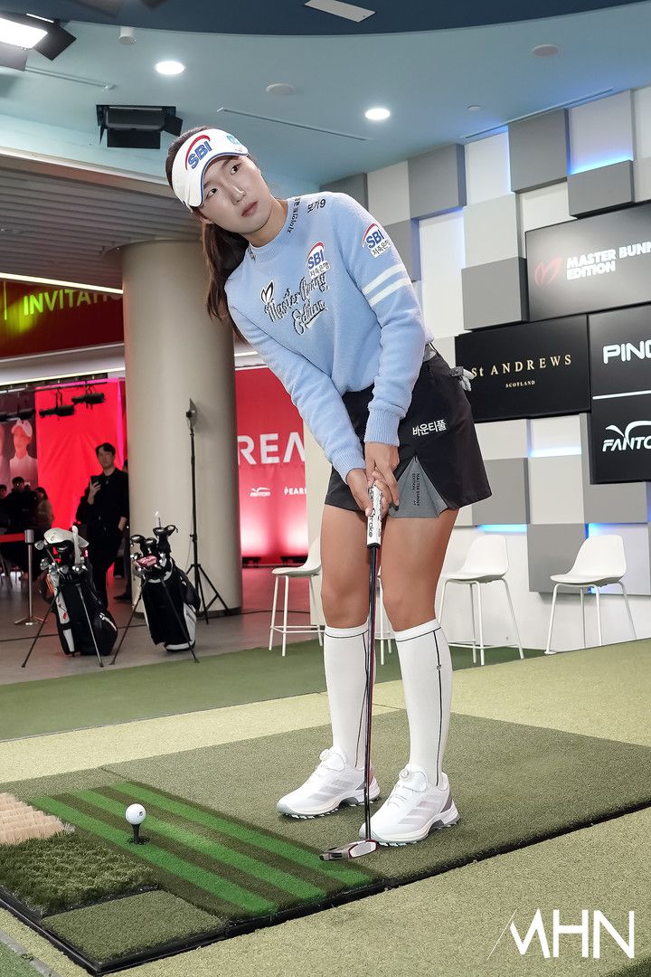 경기 시작 전 이동은이 퍼트 연습을 하고 있다.