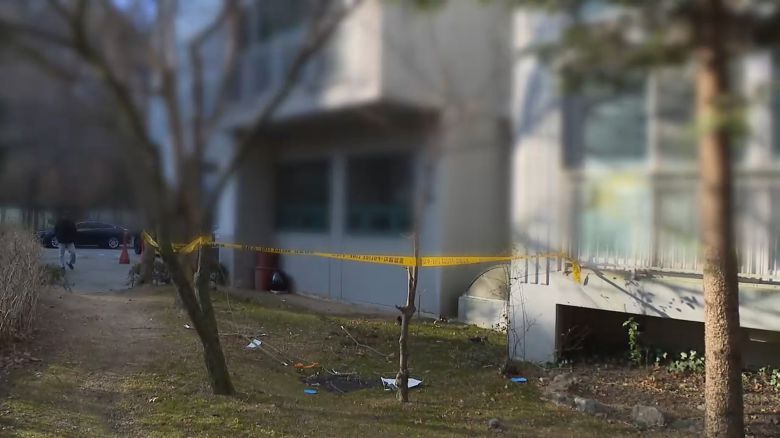 아파트 화단에 경찰 통제선이 설치돼 있습니다.