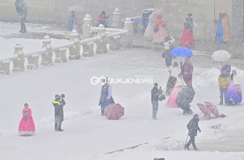 특히 늦은 오후부터 밤 사이 서울북부와 경기북부내륙·남동부, 강원내륙·산지, 충북북부, 경북북부내륙·북동산지, 제주도 산지를 중심으로 시간당 1~3㎝의 강한 눈이 집중될 가능성이 있다.
