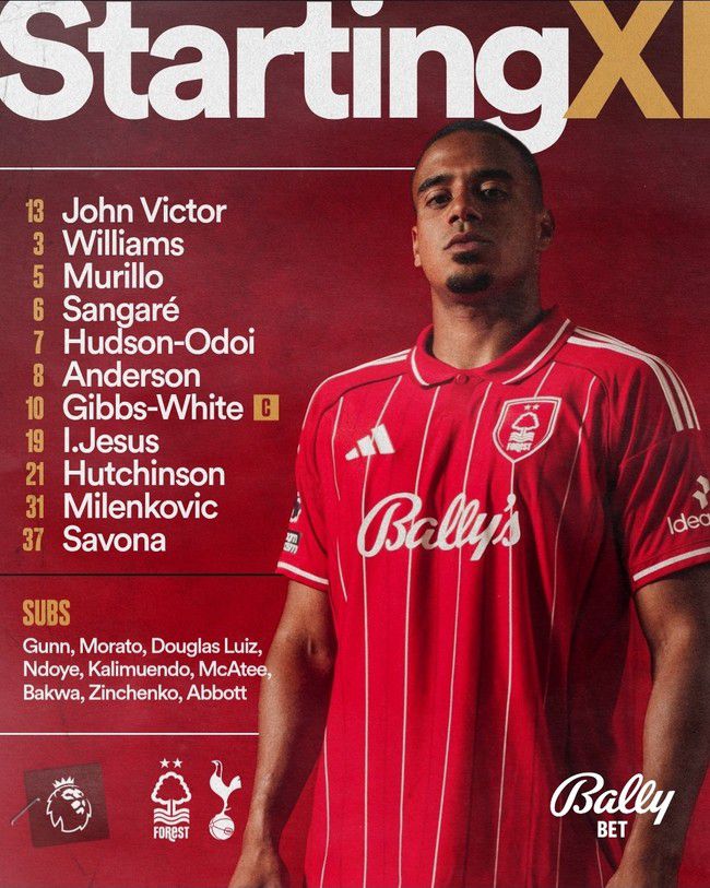 경기를 앞두고 양 팀이 선발 라인업을 공개했다. 홈팀 노팅엄 포레스트는 이고르 제주스, 허드슨-오도이, 깁스-화이트, 허친슨, 앤더슨, 상가레, 윌리엄스, 무릴로, 밀렌코비치, 사보나, 빅토르가 선발 출전한다.