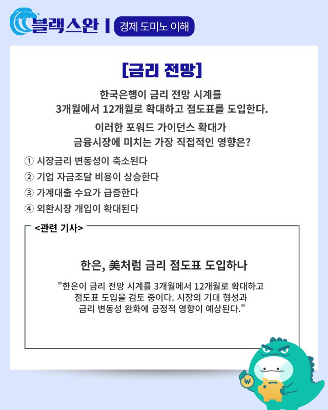 ▶기사 바로가기: 한은, 美처럼 금리 점도표 도입하나