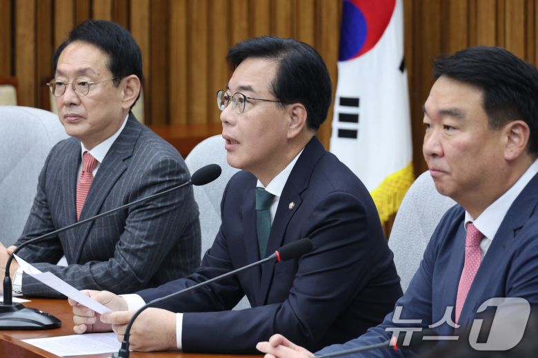 (서울=뉴스1) 신웅수 기자 = 송언석 국민의힘 원내대표가 16일 서울 여의도 국회에서 열린 원내대책회의에서 발언하고 있다. 2025.12.16/뉴스1phonalist@news1.krCopyright ⓒ 뉴스1. All rights reserved. 무단 전재 및 재배포, AI학습 이용 금지.이 기사의 카테고리는 언론사의 분류를 따릅니다.0공유하기