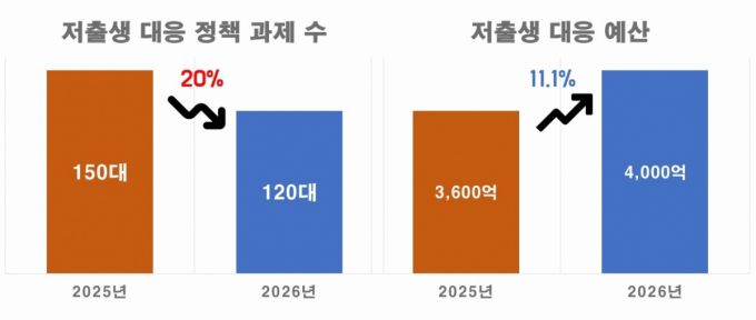 한편 경북도 2026년 저출생 대응 정책 과제 수는 지난해 보다 20%(150대 과제) 줄인 120대 과제로 추진된다.