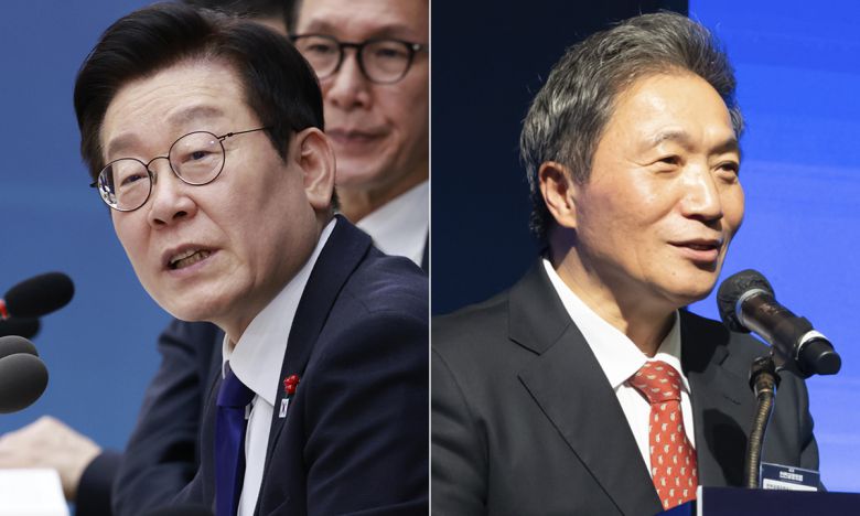 이재명 대통령(왼쪽), 이학재 인천국제공항공사 사장. 연합뉴스 |