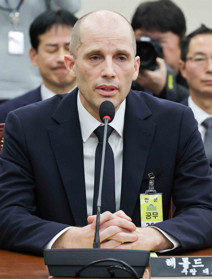 [서울=뉴스핌] 윤창빈 기자 = 헤롤드 로저스 쿠팡 대표가 17일 서울 여의도 국회 과학기술정보방송통신위원회에서 열린 쿠팡 침해사고 관련 청문회에서 의원 질문에 답변하고 있다. 2025.12.17 pangbin@newspim.com |