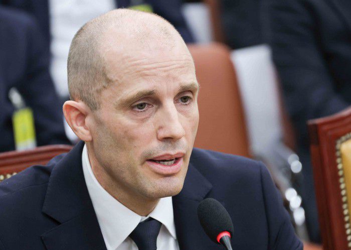 [서울=뉴스핌] 윤창빈 기자 = 헤롤드 로저스 쿠팡 대표가 17일 서울 여의도 국회 과학기술정보방송통신위원회에서 열린 쿠팡 침해사고 관련 청문회에서 의원 질문에 답변하고 있다. 2025.12.17 pangbin@newspim.com |