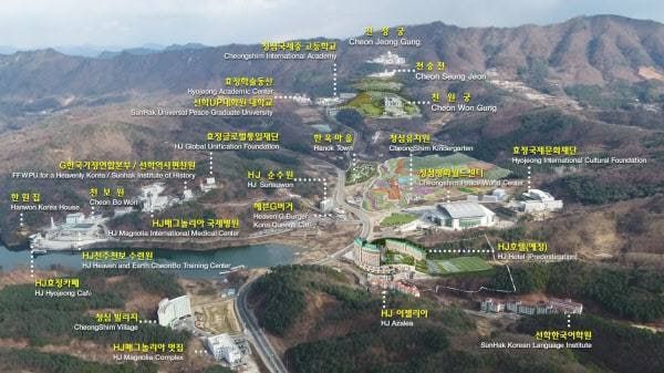 통일교가 가평에 자리잡은 건 1971년이다. 통일교를 만든 문선명 초대 총재가 통일교인들이 모일 수 있는 수련원을 지으면서부터였다. 이후 통일교 건물, 시설물이 우후죽순 들어섰다.