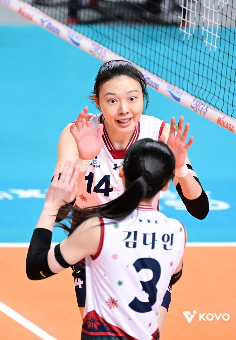 김다인의 양질의 토스를 받은 카리가 양팀 통틀어 25점(41.30%)을 올리며 모마(21점, 32.81%)와의 외인 싸움을 압도했고, 정지윤(16점), 자스티스(14점), 양효진(14점)까지 주전들이 고른 활약을 보였다. 반면 도로공사는 모마(22점)와 강소휘(13점), 타나차(11점)의 삼각편대가 두 자릿수 득점엔 성공했지만, 불안한 경기력을 극복할 순 없었다.
