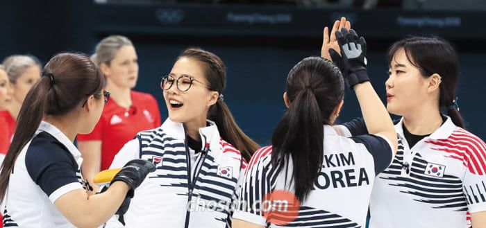 2018 평창 동계올림픽에서 은메달을 획득한 여자 컬링 국가대표팀. 구성원 김은정, 김영미, 김선영, 김경애, 김초희 5명이 모두 김씨여서 '팀 킴(Team Kim)' 으로 불렸다. /조선일보DB |