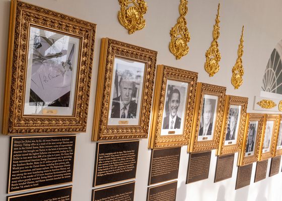 바이든 전 대통령 대신 걸린 오토펜 사진에 설치된 동판 설명에는 “졸린 조 바이든은 미국 역사상 최악의 대통령이었다”는 내용과 함께 “역사상 가장 부패한 선거를 통해 취임한 바이든은 전례 없는 재앙을 초래해 우리나라를 파멸 직전까지 몰고 갔다”는 내용이 담겼다.