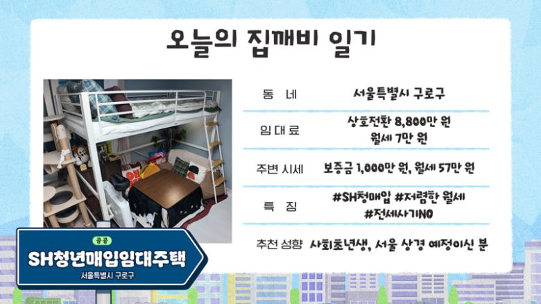 19일 방문한 서울 구로구 SH청년매입임대주택(원룸)은 상호전환을 통해 최대 보증금 8580만원, 월세 7만원에 거주할 수 있다. 다방이 발표한 10월 기준 구로구 원룸 평균 보증금과 월세가 각각 1000만원과 57만원인 점을 감안하면 저렴한 수준이다. 관리비는 SH가 90%를 부담하고, 나머지 10%를 세입자들이 나눠 부담한다.