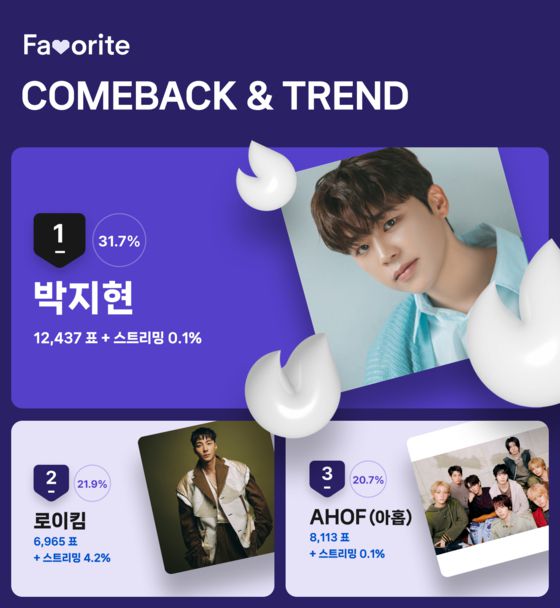3위는 팬 투표 3만 6585표로 총 9.5%의 지지를 받은 플레이브가 차지했다.