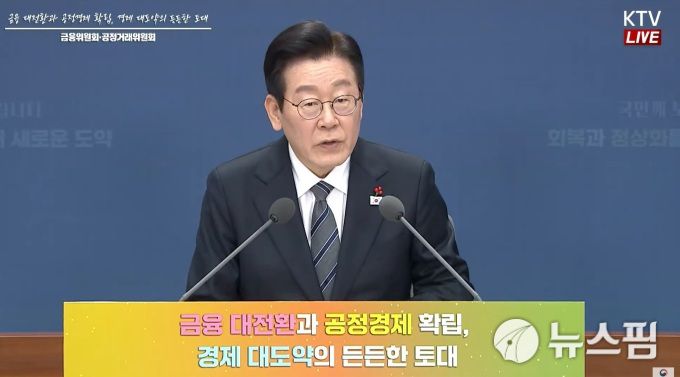 이재명 대통령이 19일 정부서울청사 별관에서 금융위원회와 공정거래위원회 업무보고를 주재하고 있다. [사진=KTV]