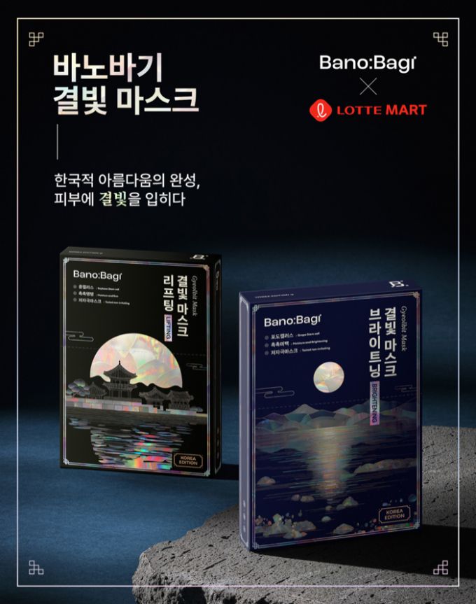 글로벌 K-더마 브랜드 바노바기가 한국 전통 미감을 담은 마스크팩 신제품 '결빛 마스크' 2종(리프팅·브라이트닝)을 롯데마트를 통해 선보였다.
