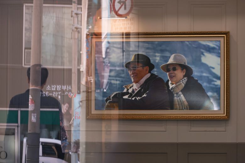 서울 용산구 세계평화통일가정연합 한국본부 로비에 한학자 통일교 총재(오른쪽)와 고 문선명 통일교 총재 사진이 걸려 있다. [연합] |