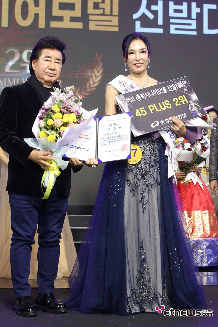 참가자 이영미가 45플러스 2위 수상후 포즈를 취하고 있다