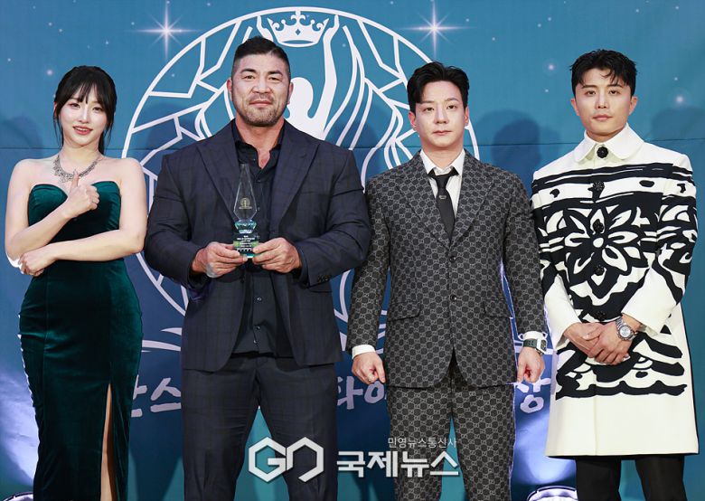 (서울=국제뉴스) 이대웅 기자 = '제3회 대한스포츠문화예술대상' 시상식이 12일 경기도 성남시 동서울컨벤션센터에서 열렸다. 이날 보디빌딩 부문에서 스포츠대상을 수상한 박정수 보디빌더가 기념 포즈를 취하고 있다.