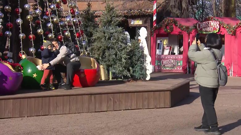 방문객들은 대형 산타 풍선과 트리에서 포즈를 취하며 서로 사진을 찍어주고 있는데요.