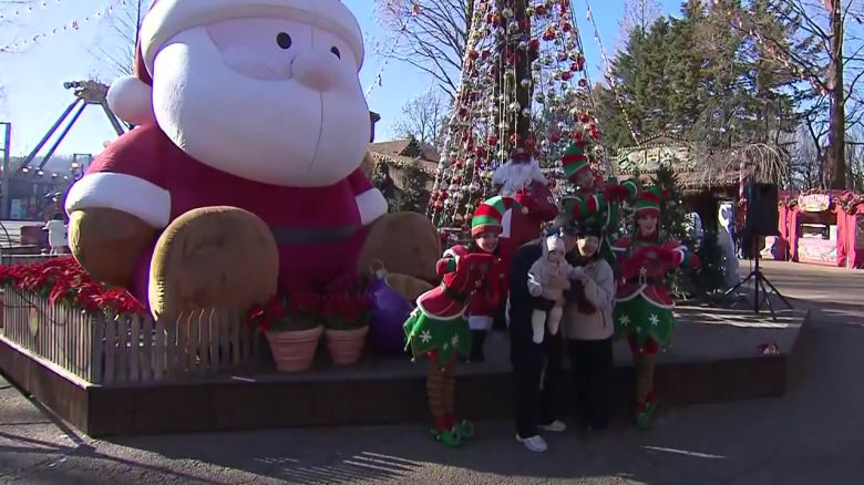 방문객들은 대형 산타 풍선과 트리에서 포즈를 취하며 서로 사진을 찍어주고 있는데요.