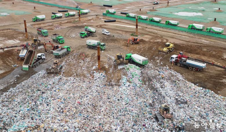 인천 서구 수도권매립지 3-1공구에서 쓰레기를 매립하는 모습. 2026년 1월 1일부터 수도권 생활폐기물 직매립이 금지되지만 소각장 구축이 원활하게 진행되지 않아 빨간불이 켜졌다. 인천=양회성 기자 yohan@donga.com |