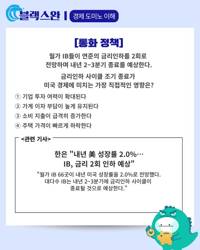 ▶기사 바로가기: 한은 “내년 美 성장률 2.0%···IB, 금리 2회 인하 예상”