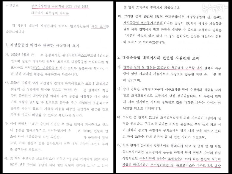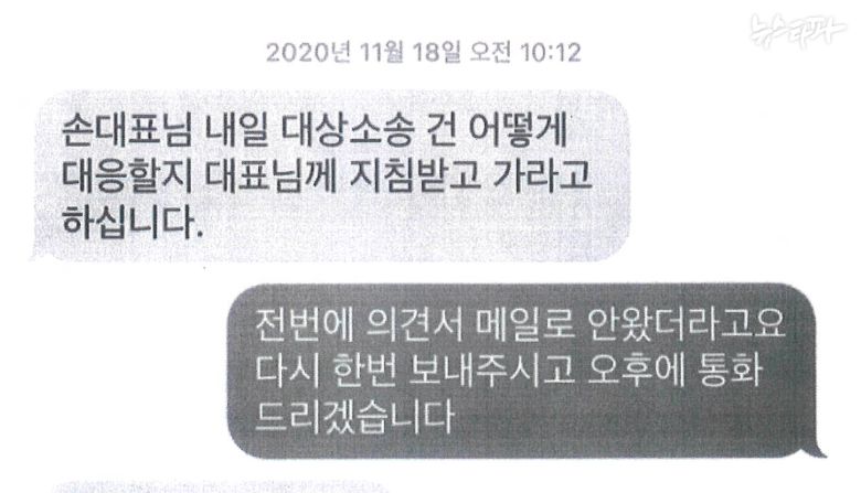 실제로 2020년 9월 9일, 쉬도 쉬핑의 소송 담당자와 당시 대상중공업 고문으로 월 500만 원을 받던 손 씨는 이런 문자 메시지를 주고받았다.