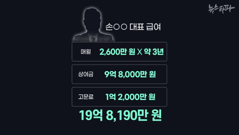 이렇게 2년 간 500만 원을 받았던 손 씨는 직무 관련 회사 취업 제한 시기인 2년이 지나자마자 대상중공업의 대표로 취임했다. 그리고 권혁 회장의 다른 계열사인 DSHI에도 대표로 이름을 올렸다. 두 회사로부터 모두 월급을 받았다. 한 달 월급만 2,600만 원에 달했다. 2020년 5월에는 ‘특별 상여금’ 명목으로 한 번에 9억 8,000만 원을 지급받기도 했다. 손 씨가 약 5년 6개월 동안 권혁 회장으로부터 받은 금전적 이익을 다 합하면 그 액수는 20억 원에 육박한다.