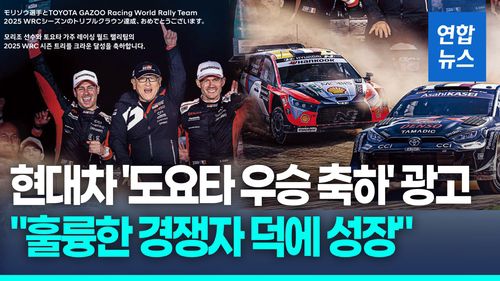 현대차는 22일 한국과 일본의 주요 신문에 도요타 가주 레이싱 월드랠리팀(TGR-WRT)의 '2025 WRC' 3관왕 달성을 축하하는 전면 광고를 게재했습니다.