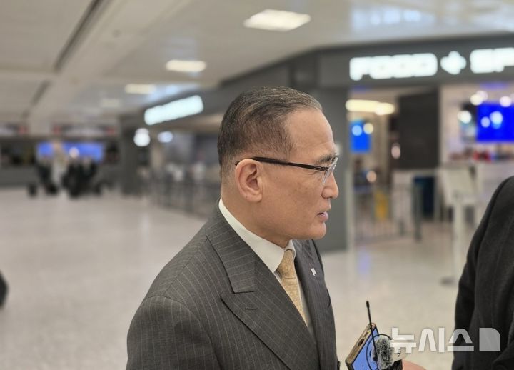 [워싱턴=뉴시스]이윤희 특파원 = 위성락 대통령실 국가안보실장이 16일(현지 시간) 미국 워싱턴DC 인근 덜레스국제공항으로 입국해 특파원들 질문에 답하고 있다. 2025.12.17. |