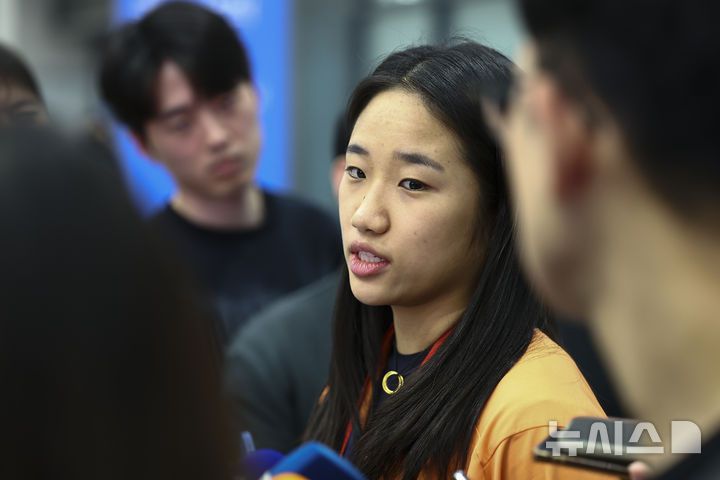 [인천공항=뉴시스] 김근수 기자 = 배드민턴 역대 단식 단일 시즌 최다승(11승)을 기록한 안세영이 22일 인천 중구 인천국제공항 제1여객터미널으로 2025 세계배드민턴연맹(BWF) 월드 투어 파이널 대회를 마치고 귀국한 뒤 취재진 질문에 답하고 있다. 2025.12.22. ks@newsis.com