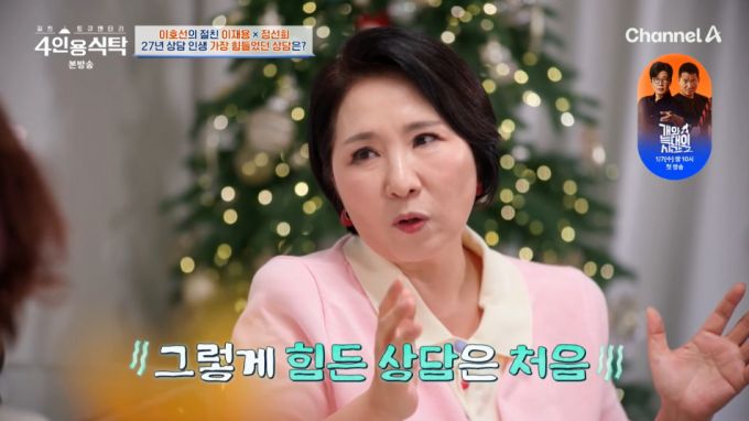 심리상담가 이호선 교수가 27년 상담 사례 중 가장 힘들었던 상담을 꼽았다./사진=채널A '절친 토큐멘터리 4인용 식탁' 방송 화면 |