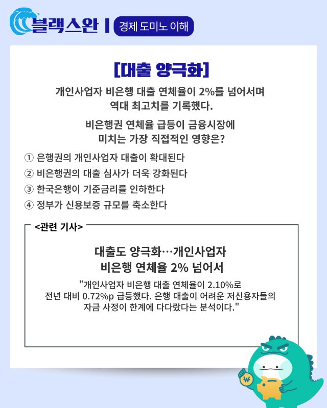 ▶기사 바로가기:대출도 양극화···개인사업자 비은행 연체율 2% 넘어서