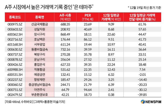 중국 본토 A주 시장에서도 은 테마주의 거래 열기는 뜨겁다.