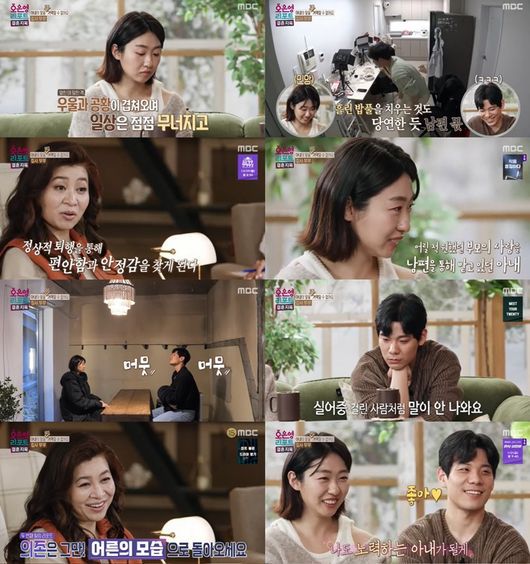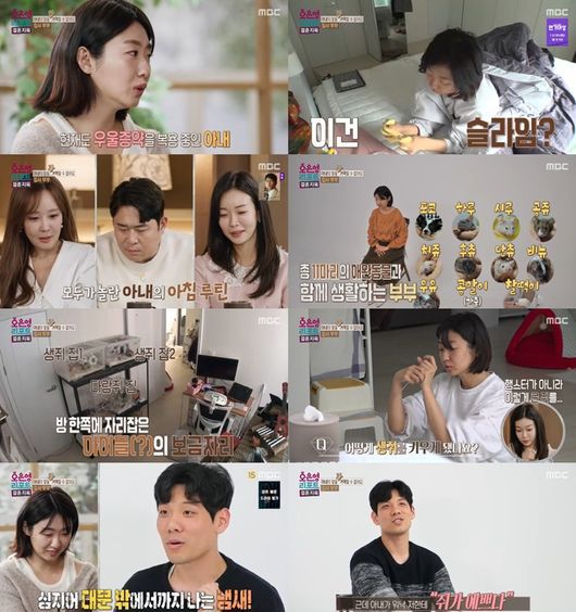 이 밖에도 사소한 집안일들을 귀찮아하며 남편에게 맡겼다. 남편은 이러한 아내의 부탁에 짜증 한번 없이 즉각 반응했다. 알고 보니 아내는 강압적인 부모 아래서 성장해 어린 시절부터 우울증을 겪었고, 20대 초부터 우울증과 수면증 약을 먹고 있다고 털어놔 시청자들을 안타깝게 했다.