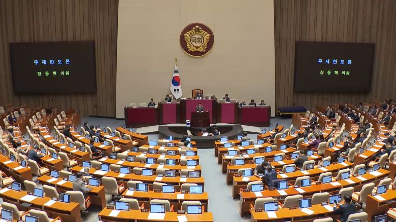 국민의힘 장동혁 대표가 밤샘 필리버스터를 진행한 가운데, 현재 처리가 임박한 상황인데요.