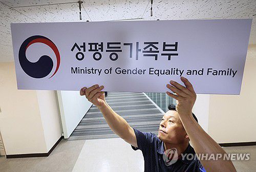 성평등가족부 현판 설치[연합뉴스 자료사진] dindong@yna.co.kr ▶제보는 카카오톡 okjebo▶연합뉴스 앱 지금 바로 다운받기~▶네이버 연합뉴스 채널 구독하기<저작권자(c) 연합뉴스, 무단 전재-재배포, AI 학습 및 활용 금지>이 기사의 카테고리는 언론사의 분류를 따릅니다.0공유하기