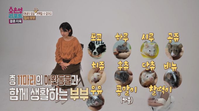 생쥐 8마리 등 반려동물만 11마리를 키우며 또 다른 반려동물 입양을 고민 중인 아내에게 정신건강의학과 전문의 오은영 박사가 조언을 건넸다./사진=MBC '오은영 리포트-결혼 지옥' 방송 화면 |