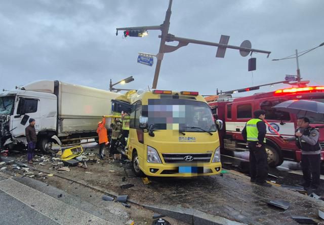 전북 김제서 초등학교 통학 버스와 화물차 충돌… 12명 중경상
