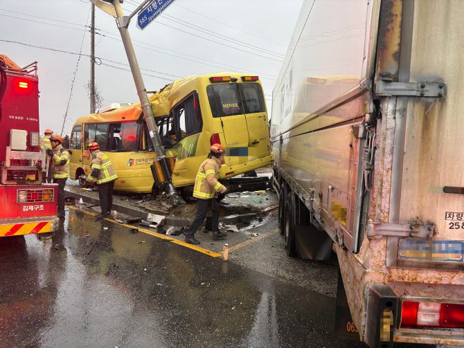 [이데일리 권하영 기자] 23일 오후 4시26분쯤 전북 김제시 백산면 돌제교차로 인근에서 윙바디 화물차와 초등학생 통학 차량이 부딪히는 사고가 발생했다.