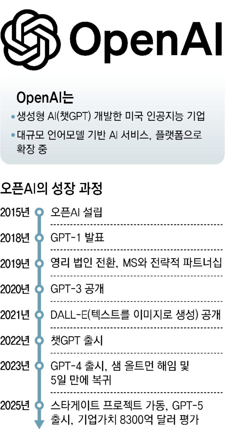 오픈AI의 궁극적인 목표는 범용 인공지능(AGI)이다. 오픈AI는 지금 두 세계 사이에 서 있다. 구독과 생태계가 작동하는 소프트웨어의 세계와 전력·공급망·자본이 지배하는 인프라의 세계다. 결국 다음 평가는 더 똑똑한 모델이 아닌 단단한 사업 구조에서 나올 것이다. 8300억 달러의 기업가치를 두고 누군가는 차세대 구글을, 누군가는 거대한 버블을 본다. 분명한 것은 오픈AI의 성공과 실패가 AI 산업의 패러다임뿐만 아니라 인류의 지능에 대한 정의를 바꿀 수 있다는 점이다. 챗GPT로 시작된 혁명은 아직 끝나지 않았다.