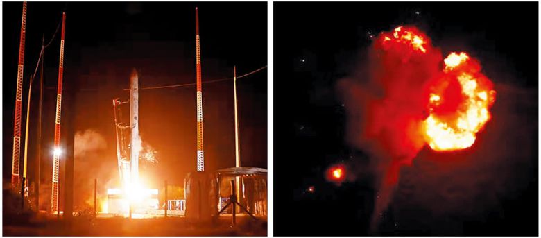 민간 우주 기업 이노스페이스가 23일 쏘아 올린 우리나라 첫 상업용 우주 발사체 ‘한빛 나노’가 기체 이상으로 추락했다. 이날 한빛 나노는 오전 10시 13분쯤 브라질 알칸타라 우주센터에서 발사됐으나(왼쪽), 이륙한 지 30초쯤 지나 유튜브 생중계 영상에서 폭발하듯 화염이 번지는 모습이 잡혔고, 이후 생중계도 끊겼다(오른쪽). 이노스페이스 측은 “발사 후 1분 20초쯤 지나 기체에 이상이 감지돼 지상 안전 구역으로 추락한 뒤 폭발했다”면서 “인명 피해는 없었다”고 했다.
