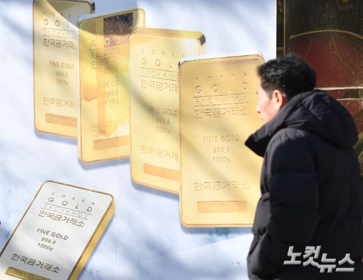 서울 종로구 한국금거래소 건물에 골드바 사진이 걸려 있다. 류영주 기자