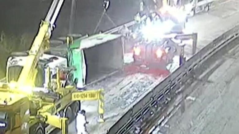 경찰과 소방 당국은 화물차가 빗길에 미끄러지면서 사고가 난 것으로 보고 정확한 경위를 조사하고 있습니다.