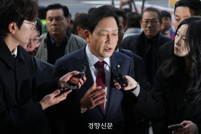 김선교 국민의힘 의원이 26일 서울 종로구 광화문 KT 빌딩에 마련된 김건희 특검 사무실에 피의자 신분으로 출석하며 취재진의 질문에 대답하고 있다. 정효진 기자