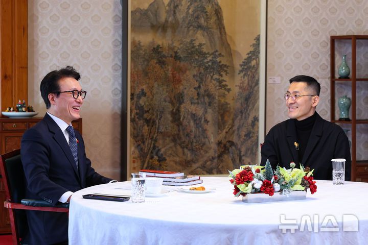 [서울=뉴시스] 김민석 국무총리는 22일 국무총리 공관에서 강민구 셰프를 초청, '제8차 K-토론나라 : 총리의 인터뷰'를 개최했다. (사진=국무총리실 제공) 2025.12.24