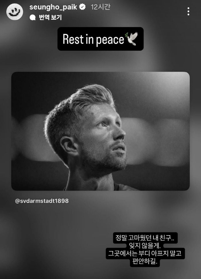[공식발표] '韓 국대' 백승호도 슬픔에 빠졌다 "친구, 잊지 않을게"...34세 독일 선수 불의의 사고로 사망