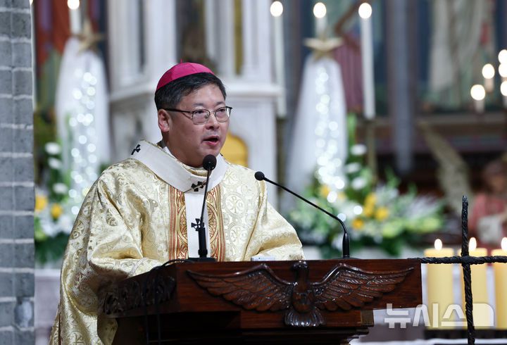[서울=뉴시스] 황준선 기자  = 천주교 서울대교구장 정순택 대주교가 성탄절인 25일 서울 중구 명동대성당에서 주님 성탄 대축일 밤 미사를 집전하고 있다. (공동취재) 2025.12.25. photo@newsis.com